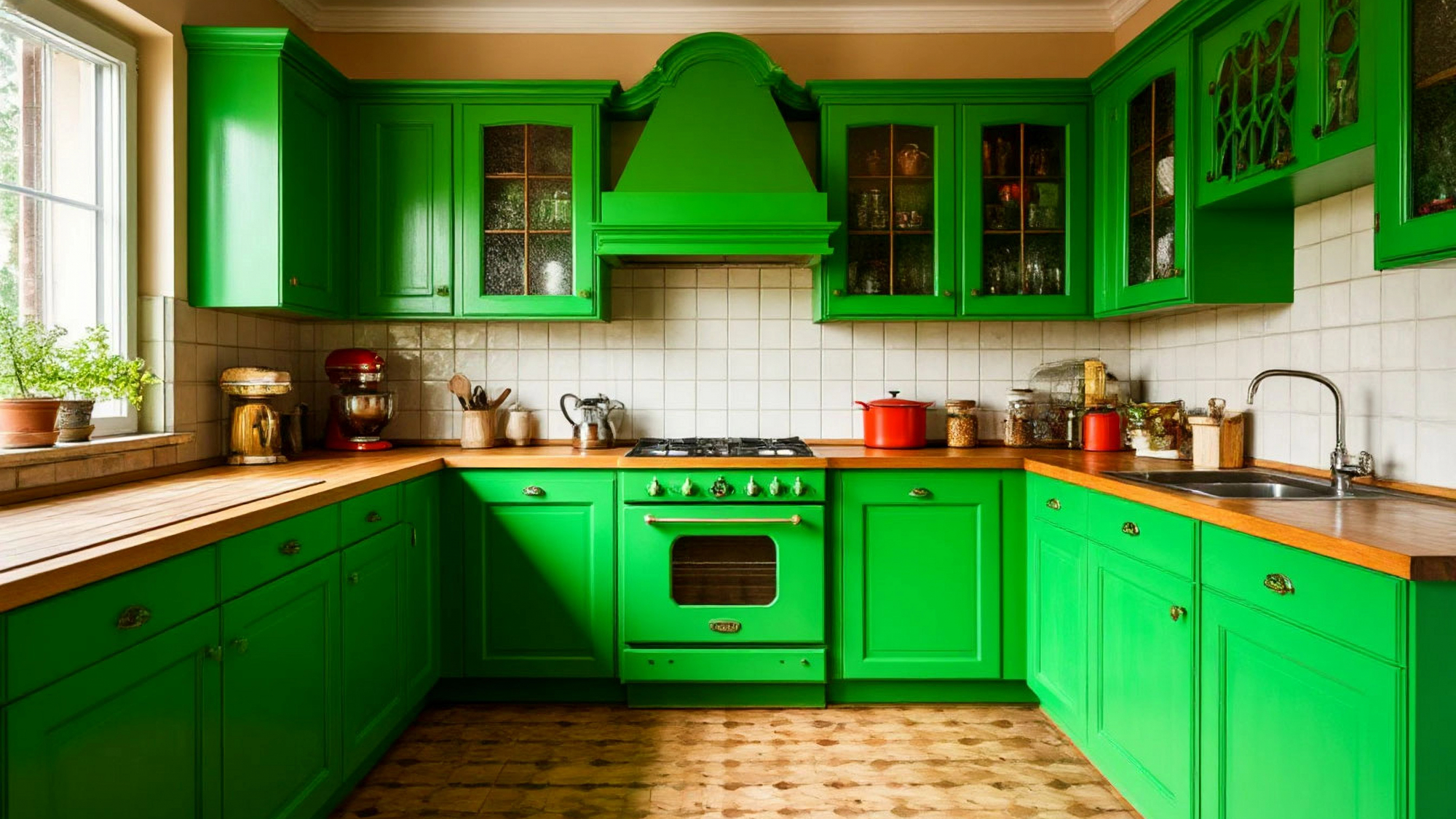Эмалевые и деревянные поверхности чередуются, играя фактурами. Матовые элементы добавляют глубины, а природный блеск дерева оживляет композицию. Свет в таком интерьере особенно важен: он не просто освещает, он раскрывает характер кухни. Утренний солнечный луч скользит по фасадам, будто оживляя их, а вечерний свет делает пространство мягким и уютным, словно дом готовится к покою.