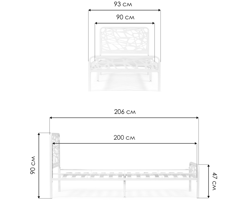 Ширина кровати: 93 см.
