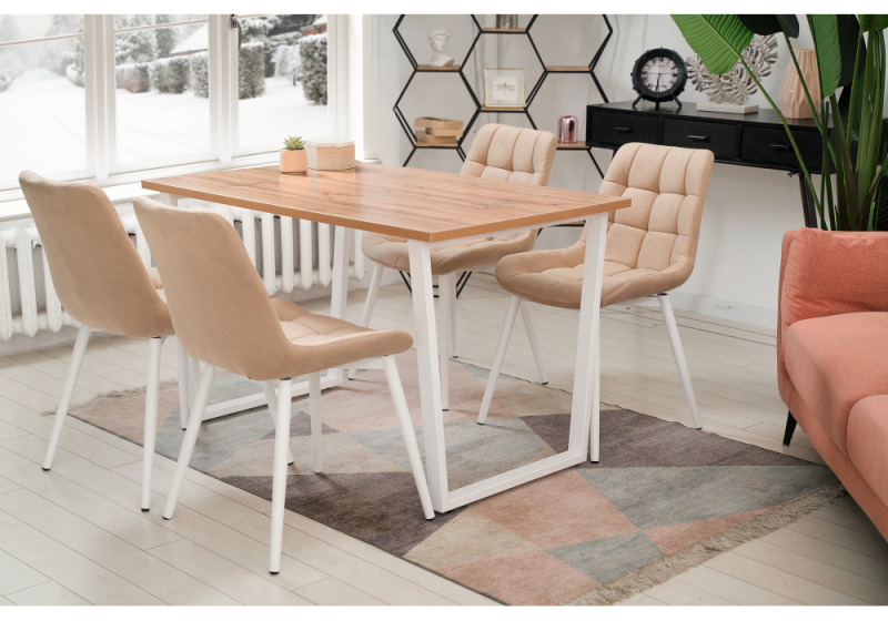 Стол деревянный Лота Лофт 140х80 белый матовый / дуб крафт золотой (80x75).