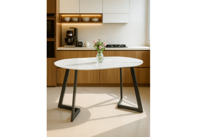 Стол стеклянный Алингсос белый / белая шагрень (100x76).